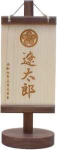 お子様の名前、生年月日、家紋等をレーザー刻印致します