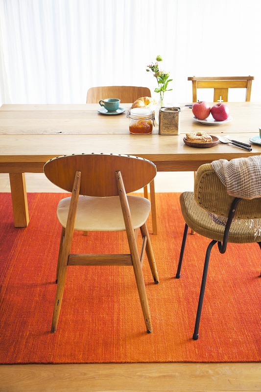 サイズはまず「そこでどんな風に過ごしたいか」を考えましょう。さらに合わせる家具(ソファやダイニングテーブルなど)のサイズを測り、用途や合わせる家具とのバランスをみて余裕を持ったサイズをおすすめ致します。ソファの前ならソファ幅よりやや大きめがバランスとしていいと言われています。ダイニングテーブルの下なら椅子を引いて座るスペースまで考慮しましょう。